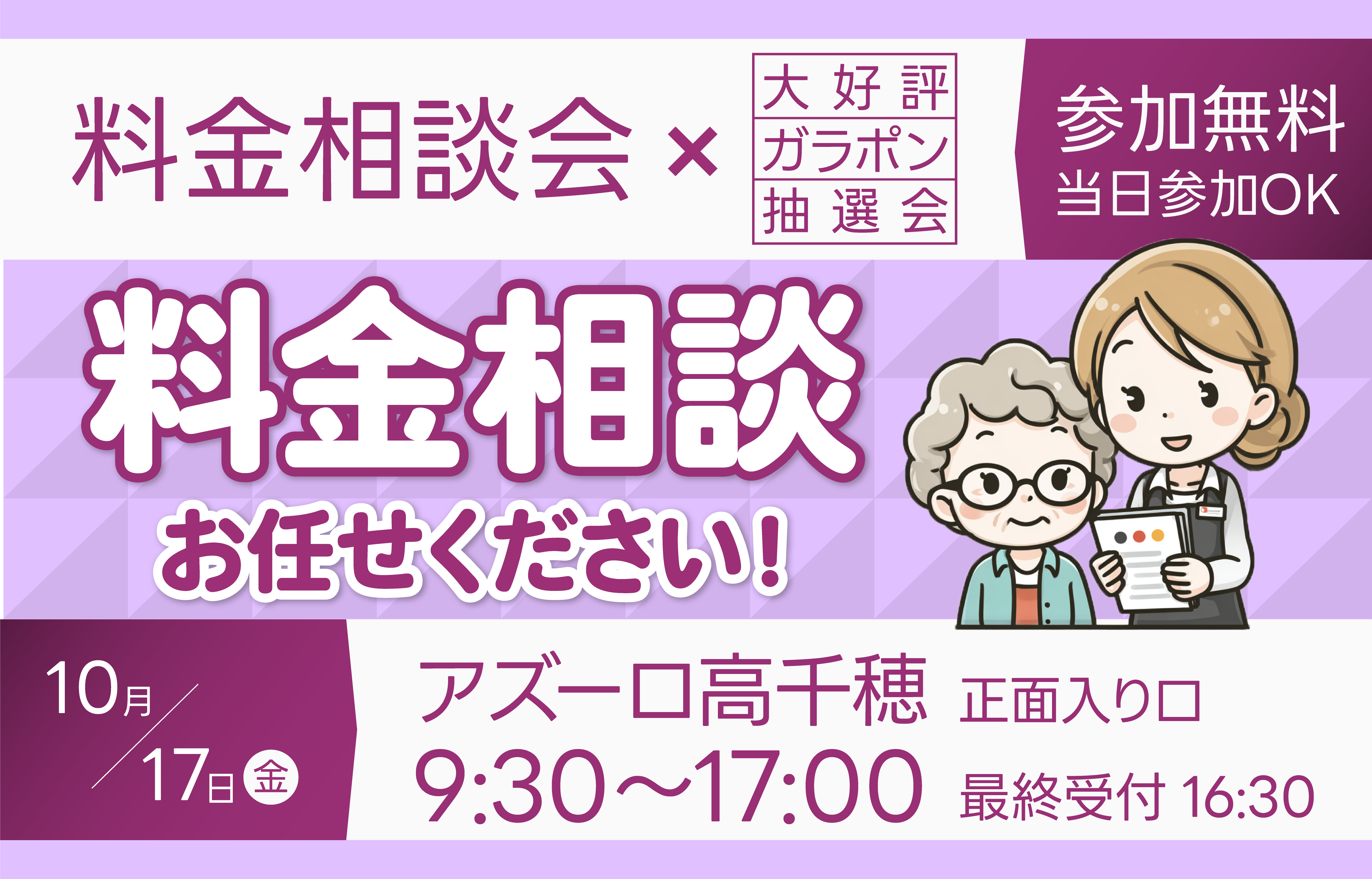 料金見直しだけでも、ガラポン抽選会だけでも、もちろん大歓迎です!予約不要ですので、お気軽にお立ち寄りください。 皆様のお越しを心よりお待ちしております!